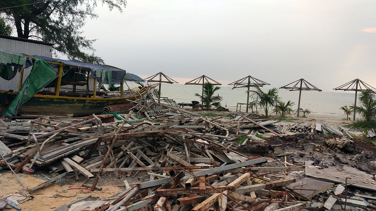 Die Stadt Sihanoukville ist, wie zu erwarten war, nicht sehenswert. Ein aufstrebender touristischer Moloch, in dem der Bauboom wütet. Die chinesischen Investoren haben die Küste scheinbar schon vollständig aufgekauft. Wir haben uns unterdessen vom Lonely Planet Reiseführer weiter nach Otres Beach leiten lassen, "ein scheinbar endloser, einsamer Strandabschnitt voller Kasuarinen (Baum od. Strauch mit federartigen Zweigen, Anm. d. Red.), der problemlos mit den Stränden Südthailands konkurrieren kann". Naja, ab jetzt wissen wir zumindest, dass wir ganz bestimmt niemals Urlaub in Südthailand machen werden. Klar, die Strandbars und -restaurants befinden wirklich nicht mal zehn Meter vom dahin plätschernden Wasser entfernt. Aber wenn man in die Gesichter der Urlauber schaut, sehen die doch irgendwie oft verbissen aus, vermutlich weil sie sehr damit beschäftigt sind, die Müllberge rechts und links sowie die Baustellen im Rücken auszublenden.